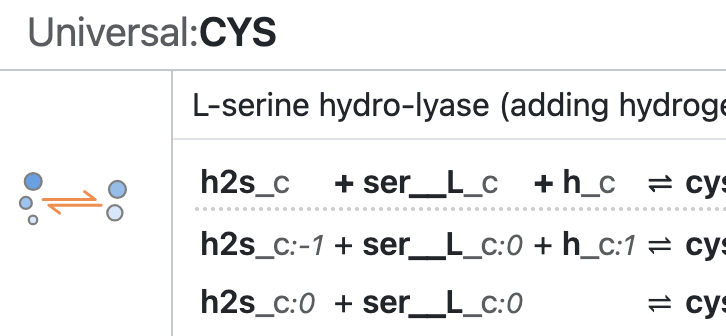 In models, reactions use the BiGG ID of their universal reaction. Whenever a model uses multiple instances of reactions that fall under the same universal reaction, they are numbered using the pattern <BiGG ID>:<copy number>.