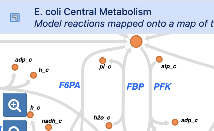 For maps showing the interconversion of two (or a few) components, all reactions interconverting these components are collected and displayed on the maps. Examples of these maps are Ubiquinone Reduction/Oxidation and L-Arginine Biosynthesis. Other — more complex — maps make use of a template Escher map, on which reactions are mapped (e.g. E. coli Central Metabolism). Maps are required to have a decent completeness (percentage of reactions in the template that are also in the model; exact threshold varies per map), otherwise they are omitted.