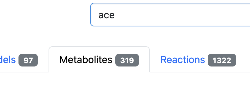 BiGGr includes a powerfull search function that returns results to the user as fast as possible. Results include any entity where (part of) the BiGG ID, name or synonym matches the search query. BiGGr aims to serve the most relevant results at the top of the results tables. Therefore, BiGG ID matches are preferred over name or synonyms, and exact matches and entities where the start of the BiGG ID, name, etc. matches the search query are prioritized.